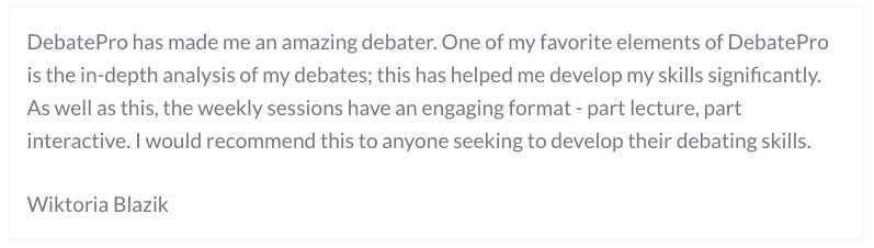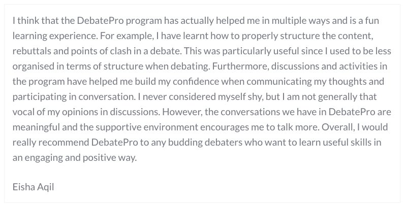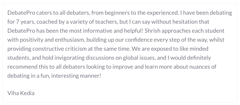 In May 2020, we initiated a pilot program to test the effectiveness of our curriculum. Our founder, Shrish Janarthanan, trained 62 students of varying experience and ability with our proprietary resources. After we completed the training, we enrolled our students in multiple competitions to see the results of their hard-work and training. In the DebateOnAir competition, our pilot program collected multiple awards in every category that was available. This proved to us that our resources have the potential to be a driving force in the debate community. Therefore, we have started our journey in establishing our curriculum in schools across the world!